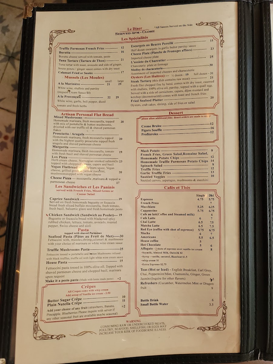 The menu features a delightful selection of classic French dishes, and here are a few highlights that are sure to whet your appetite: